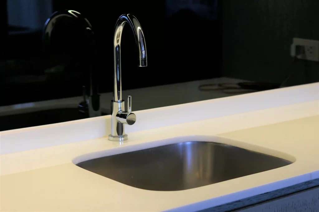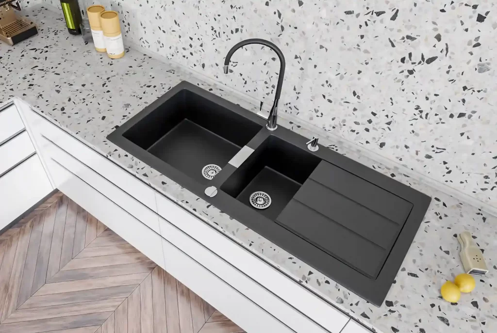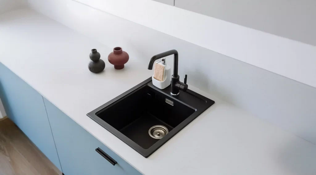 - For a more premium look, granite or quartz composite sinks are excellent. They are strong, scratch-resistant, and heat-tolerant.