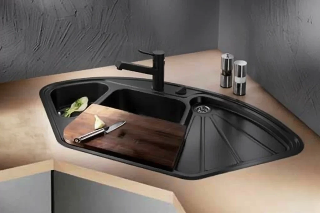 - Small kitchens benefit from single-bowl sinks or corner sinks, which free up counter space.